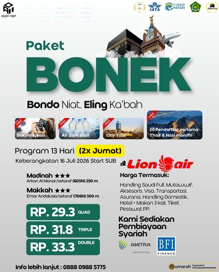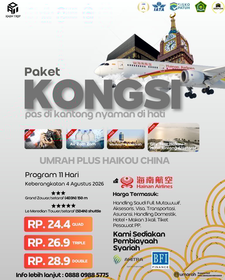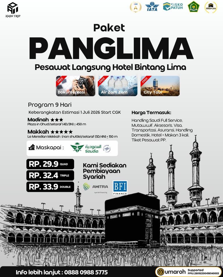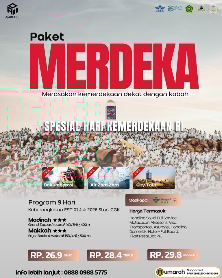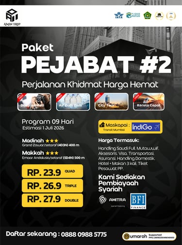 Rasakan Perjalanan Spiritual yang Nyaman dan Aman dengan Amin Trip, Paket Umroh Lengkap dan Terpercaya.
